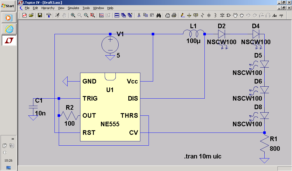 Guten Tag. Ich möchte bis zu 20 LEDs in Reihe mit Hilfe eines Step-Up-Wandlers an einer Betriebsspannung von 12V betreiben. Aktuell experimentiere ich dafür mit einem NE555 (war grad da) und bin nach einigen Überlegungen und Simulation bei der Schaltung im Bild angekommen: C1 und R2 generieren mir ein Taktsignal. Der Discharge-Pin (Open-Collector-Ausgang) wird als Schalttranistor für die Spule L1 missbraucht. Über R1 wird der interne Spannungsteiler für das Taktsignal verändert, damit der Strom nicht immer mehr ansteigt. (Gegenkopplung) Die Schaltung funktioniert in der Simulation, und als Hardwareaufbau mit 5V Betriebsspannung. Meine Frage: Wenn die Schaltung später mit 12V und 20 LEDs betrieben werden soll, liegen im Ausschaltmoment des Discharge-Pins ca 44V an. Leider habe ich keine Maximalspannung an diesem Pin im Datenblatt gefunden. Weiß jemand, wie belastbar dieser Discharge-Pin ist? Falls keine Informationen darüber verfügbar sind, muss ich halt einen externen Transistor verwenden.
