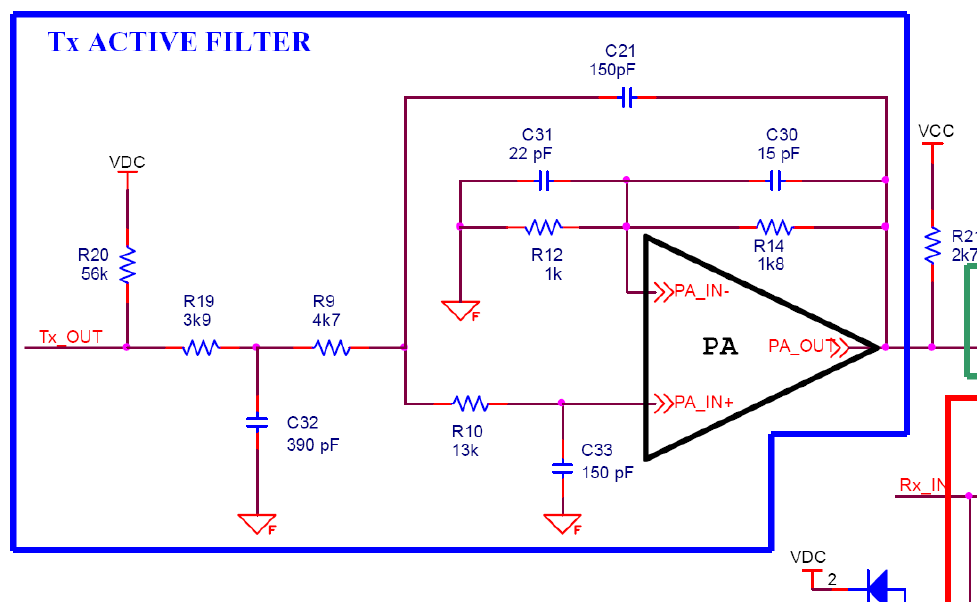 >Woran soll man sich eigentlich halten, wenn Beschaltungen im Datenblatt >anders sind als in Application Notes zu dem Baustein? Jetzt, wo erkennbar ist, daß der PA einen Übertrager treiben muß, wird der Sinn von C30 und C31 klar: Zunächst wird wohl die undedfinierte Eingangskapazität des PA mittles C31 auf einen definierten Wert angehoben. Das hat aber eine Aufzehrung der "phase margin" zur Folge, was sogleich mit der "phase lead" Kapazität C30 kompensiert wird. Dieses Vorgehen ist aber eher ungeschickt. Besser wäre es, C31 wegzulassen und mit einer kleineren "phase lead" Kapazität zu kompensieren. Damit erreicht man in der Regel stabilere Verhältnisse.