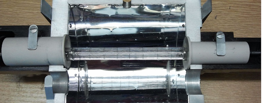 Hallo, das Teil sieht aus wie ein Laser (Rubinlaser oder YAG Laser) sieht man ganz gut an der Form des Reflektors (davon müsste es noch eine 2te Hälfte geben) und an der Halterung parallel zur Röhre für den Laserkristall.