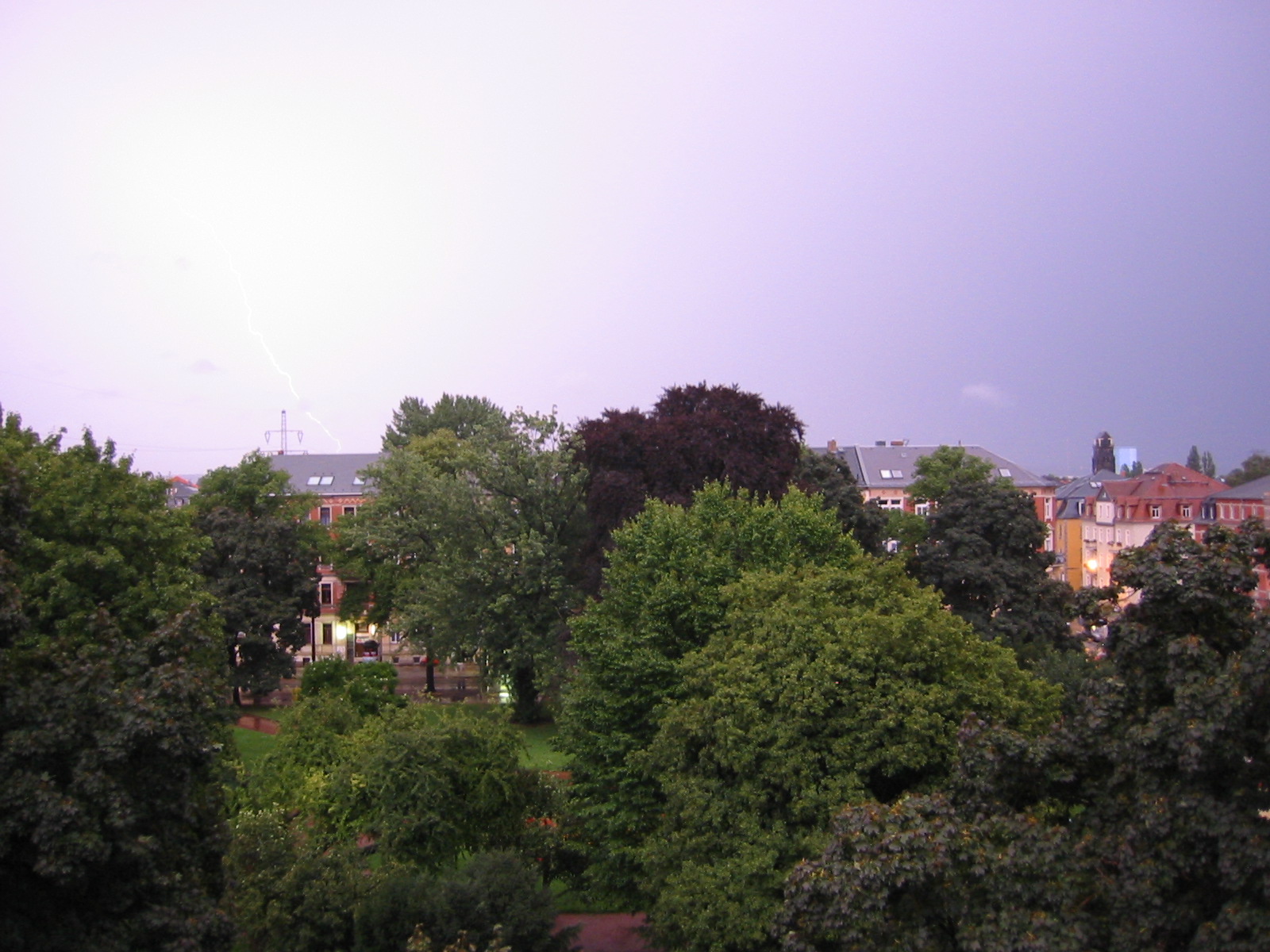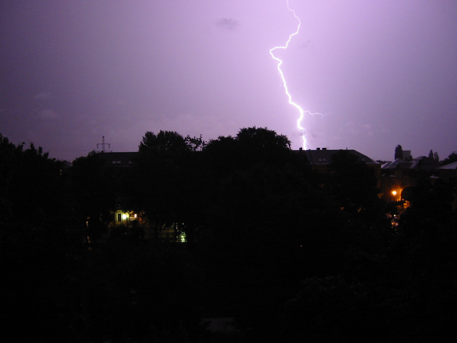 Hier mal ein praktisches Beispiel einer "Blitzlichtaufnahme". Hat die halbe Stadt beleuchtet, der Turm rechts im Hintergrund ist ca. 2km weit weg. ;-)