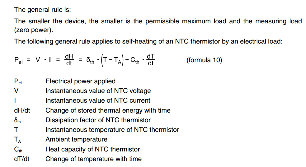 Hallo, Ich versuche mich gerade zum Thema NTC und Eigenerwärmung aufzuschlauen und habe ein interessantes Dokument von EPCOS gefunden, das dieses Thema etwas ausführlicher als Vishay, usw. behandelt. http://www.epcos.com/web/generator/Web/Sections/ProductCatalog/Sensors/TemperatureMeasurement/PDF/PDF__General__technical__information,property=Data__en.pdf;/PDF_General_technical_information.pdf Auf Seite 7 fällt mit Formel (10) eine Differentialgleichung vom Himmel, die den Zusammenhang zwischen Temperatur, Verlustleistung, Verlustfaktor, Wärmekapazität darstellt. Hat jemand eine Idee, wo die EPCOS – Leute die Gleichung herhaben oder wurde sowas ähnliches schon mal irgendwo gesehen (wo?) ? Ich würde den Aufbau der Gleichung gerne mal ‚nachschmecken‘ wollen. Gruss Andre