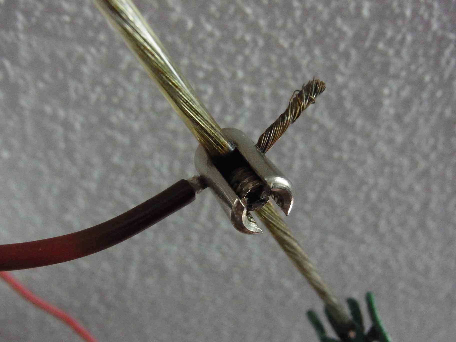Danke, ich werd da mal nen neuen roten Draht installieren, oder gar ein Stück von dem Restdraht der Originalseile einbauen. Dann könnte ich noch an diese Zuleitung auf halber Strecke noch eine Verzweigung hinzufügen und das Seil y-artig an 2 Stellen mit Strom versorgen. Hilft aber nix, wenn da die Kontaktwiderstände auch nach oben gehen.