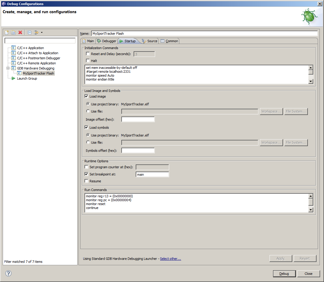 Hallo, ich weiß es ist inzwischen schon der x-te Thread zu dem Thema aber ich brauche glaube ich mal einen Wink mit dem Zaunpfal... Ich habe Probleme beim Einrichten des Segger JLink GDB Servers unter Eclipse. Hier erst mal meine Umgebung: - Windows 7 - Code Sourcery Lite GCC Compiler - Eclipse Indigo - Segger JLink EDU - SEGGER J-Link GDB Server V4.26a - Controller STM32F103ZE - Verbindung über JTAG Was bisher geht: Mit den diversen Beiträgen hier im Forum, bei Yagarto und Co. bin ich so weit, dass ich - den Debugger in Eclipse starten kann - der Code geflasht wird - Eclipse in die Main Funktion springt und anhält - Breakpoints, single stepping, variablen und register lesen geht Meine Konfiguration von Eclipse ist: Initialization Commands: set mem inaccessible-by-default off #target remote localhost:2331 monitor speed Auto monitor endian little # STM32F103ZE monitor flash device = STM32F103ZE monitor flash breakpoints = 1 monitor flash download = 1 Runtime Options: monitor reg r13 = (0x00000000) monitor reg pc = (0x00000004) monitor reset continue Was nicht funktioniert ist die Suspend Funktion des Debuggers, d.h. wenn ich mein Programm ohne Breakpoint laufen lasse bekomme ich es nicht wieder gestoppt. Hat hier vielleicht einer einen Hinweis für mich was ich bisher falsch eingestellt habe? Danke und viele Grüße, Ralf