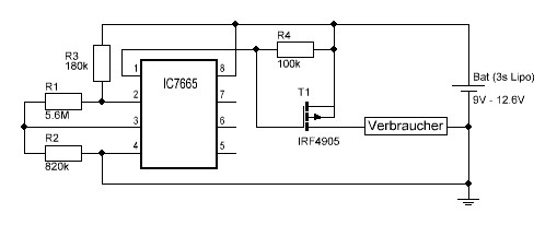 Hallo zusammen Um meinen Lipo Akku (3S, 10AH) vor Unterspannung zu schützen, habe ich eine Schutzschaltung gelötet. (Siehe Anhang) Mit Verbraucher ist der Verstärker gemeint Nun bekomme ich aber bei jedem Anschalten ein bedrohliches "Quietschen" von den Lautsprechern. Dabei senkt sich die ganze Membran schnell und kommt wieder langsam hoch (Gleichspannung?!) Leider habe ich nicht die Mittel um das zu messen, geschweige denn möchte ich das nochmals wiederholen... Als Verstärker habe ich den TA2020 Class T (D) Chip, die Platine von 41Hz: http://shop.41hz.com/shop/item.asp?itemid=43&catid= Schaltplan (ab Seite 15): http://spaz.org/~jake/r/mccad/pdf/amp6-basic-ai2.pdf Ein Verdacht ist der U-Low-ESR Kondensator mit 1500uF, welcher zu viel Strom zieht beim anschalten, könnte das sein? Könnte man das Problem beheben, wenn man eine verzögerungsschaltung bauen würde um den Mute oder Sleep Modus erst nach dem anschalten aufzuheben? So wie es momentan ist, habe ich Angst, meine Boxen oder mein Verstärker würden gleich abkratzen :/ Ohne Lipo Schutz funktioniert das ganze super, nur ein klitzekleines "Plopp" vom Lautsprecher beim anschalten Vielen Dank für eure Hilfe!