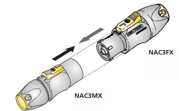 Wenn du aber auf http://www.neutrik.de/de-de/powercon/powercon-true1/nac3mx schaust und dort das erste Bild der Bildergalerie nimmst, dann würde ich schon unterstellen, daß man sie paarweise zusammenstecken kann. Ich habe sie aber nicht in natura vor mir, deshalb ist das nur Spekulation. Allerdings wollte ich mir ohnehin von Reichelt diese bestellen (weil ich die vermutlich für einen Stromanschluß am Auto brauchen kann): http://www.reichelt.de/Neutrik-Power-Con/NEUTRIK-NAC3MPA1/3//index.html?ACTION=3&GROUPID=3259&ARTICLE=34511&SHOW=1&START=0&OFFSET=500& http://www.reichelt.de/Neutrik-Power-Con/NEUTRIK-NAC-3MPB/3//index.html?ACTION=3&GROUPID=3259&ARTICLE=34513&SHOW=1&START=0&OFFSET=500& http://www.reichelt.de/Neutrik-Power-Con/NEUTRIK-NAC-3FCB/3//index.html?ACTION=3&GROUPID=3259&ARTICLE=34512&SHOW=1&START=0&OFFSET=500& http://www.reichelt.de/Neutrik-Power-Con/NEUTRIK-NAC-3FCA/3//index.html?ACTION=3&GROUPID=3259&ARTICLE=34506&SHOW=1&START=0&OFFSET=500& Falls du noch ein paar Tage warten kannst, kann ich dir dann mehr dazu erzählen...