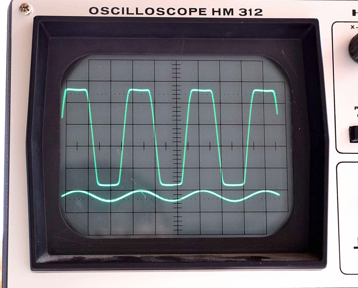 Das "sieht" stark nach Begrenzung aus. Für eine bestimmte Ausgangsleistung ist auch eine passende Betriebsspannung nötig. Keine Ahnung wie das Oszilloskop skaliert und wie die minimale Durchlassspannung deiner Endstufentransistoren aussieht.