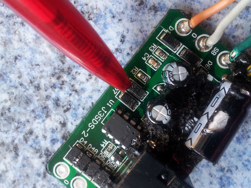 Ich würde an deiner Stelle das ganze Board neu basteln. Ist nicht sonderlich groß und auf Lochtraster schnell aufgebaut. Das Relais kannste auslöten und neu verwenden aber dem Rest der Elektronik würde ich nicht mehr vertrauen.