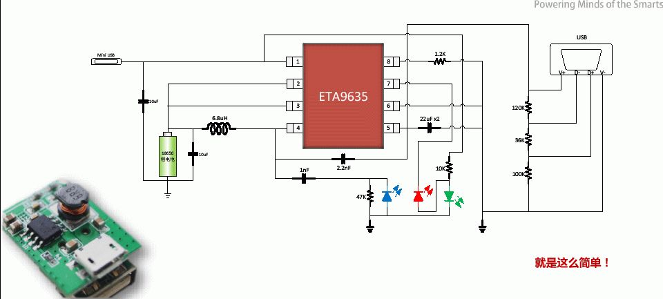 So, steuer ich auf was bei: http://www.ebay.de/itm/141160454140 Sehr praktische PowerBank 2go - Qualität passt! Leider habe ich den Schaltregler nicht abfotografiert, bevor ichs wieder zusammengebaut habe. Zwei LEDs für "Wird geladen" und "Bitte nachladen". Schnäppchen, weil: LiIon Zelle aus einem Notebookakku, mit einer Schutzelektronik aus Lidl Altbatterienkiste "protected" und dann rein damit. Für insgesamt 1.99 unschlagbar, Rest war ja für lau :) Gruß, klaus.