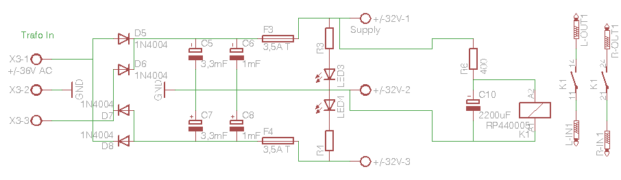 L. B. schrieb: > @rainer > > ich versteh nur nich so ganz was das bezweckt. Ein relais, egal ob vor > oder hinter dem trafo, kann doch auch erst schalten wenn dessen > versorgungsspannung das erlaubt. die speaker müssen aber davor getrennt > werden... Sinn und Zewck ist halt, dass die Spannungsversorgung der Relais zusammenbricht, bevor die Versorgung de Endstufe in die Knie geht. Damit wären die Verzerrungen beim Abschalten weg.