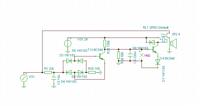 Ich habe mir auch mal so eine Schutzschaltung gebaut. Die hier funktioniert in der Simulation und in der Realität. Der Funktionsgenerator links unten wäre dein Verstärker. Als Spannungsversorgung musst du dir eine neue Gleichrichtung vor deinem Gleichrichter für die Endstufe machen. Hier ist auch ein DC-Schutz für die Lautsprecher integriert, falls dein Verstärker mal kaputt gehen sollte.