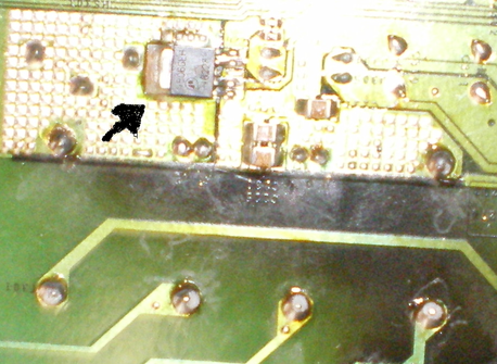 So wie die Umgebung des Transistors aussieht, hat der wohl ein massives Kühlungsproblem. Da hilft auch das eingelötete Kühlkörperchen einen Zentimeter weiter nicht mehr... Drecksdesign ;) Von daher wäre es gar nicht so verkehrt, statt dem vermutlich schwer aufzutreibenden Doppeltransistor zwei einzelne einzubauen. Einmal n-Kanal und einmal p-Kanal ist bei den Standarddaten eher kein Problem. Würde halt etwas Drahtgefummel. Bsp: Für den P-Kanal (G2/D2/S2) den IRF9328, für n-Kanal (G1/D1/S1) IRF SI4410. Solls bei Conrad geben, k.A. ob auch im Geschäft. Die beiden haben auch noch einen fast 50% kleineren Innenwiderstand, dürfte also nicht mehr so heiss werden, wenn der Rest der Schaltung was taugt. Aber etwas Kupferblech auf die Pins 5-8 wäre sicher hilfreich...