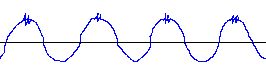 Der Netzinverter macht eigentlich einen ganz schönen Sinus, bis auf diese kleinen Spitzen im Maximum der oberen Halbschwingung der Ausgangsspannung (siehe Skizze 1). Hat jemand ein paar Ideen woran es liegen könnte oder was man versuchen könnte um dahinter zu kommen? Weitere Infos zum Inverter und Aufbau: - Nennleistung: 2kW - einphasig - Zwischenkreisspannung bis 400V - Schaltfrequenz: 100kHz - Halbleiter: Superjunction-MOSFETs - Regelfrequenz: 10kHz - LCL Ausgangsfilter (100uH; 6uF; 18uH) (Spulen selbstgewickelt) - Treiberanordnung mit Bootstrap (zur erstmaligen Aufladung 100kOhm Widerstand zwischen Highside-Sourceanschlüssen und Ground) Die Spannungsspitzen treten schon ab etwa 5 Volt Zwischenkreisspannung auf. Minimaler und maximaler Dutycicle pendeln dabei jeweils zwischen 0,05 unds 0,95. Wenn man die Dutycicle-Änderung runterregelt, werden die Spannungsspitzen ebenfalls weniger. Ab einer Zwischenkreisspannung von 80 V tritt eine Abflachung und ein Rauschen in der unteren Halbwelle auf (siehe Skizze 2). Was schon versucht wurde: Trick 17: Elektrolytkondensatoren parallel zur Zwischenkreisspannung schalten. Trick 18: Andere Quelle benutzen.