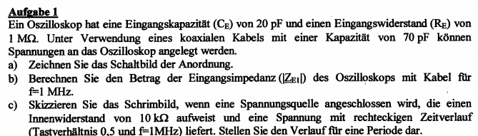 Hallo da das gestrige Thread wegen meines Fehlers durcheinander geraten ist, möchte ich die Aufgabestellung einfach mal als png-Bild anhängen. es handelt sich um Teil c) der Aufgabe.. heute habe ich, nach Anweisung von Christian meine eigene Skizze hinzugefügt und auch einen Tiefpass entdeckt (Ri-Quelle und Ck-Koaxialkabel ) http://picload.org/image/dodwlrp/oszi.png wie kann man das auf dem Schirm angezeigte Signal darstellen? Freu mich SEHR auf Eure Hilfe! Gruß