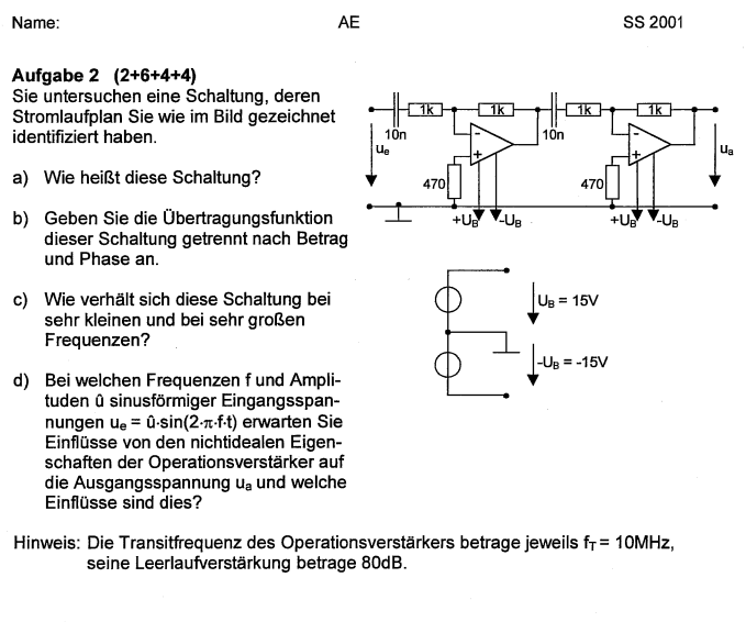 Hallo, habe eine Aufgabe mit einer Schaltung (Skizze) die mir unbekannt ist, weiss jemand was das für eine Schaltung ist unt ggf wie sie sich verhält? Danke! Alex