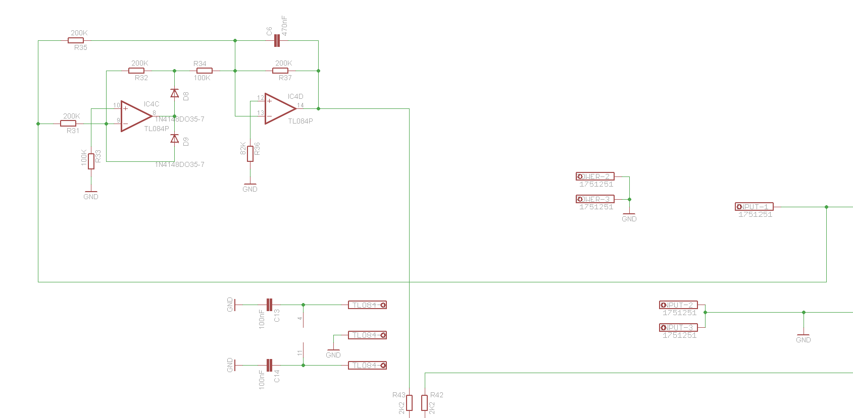 Was mir immer noch schleierhaft ist, warum im Schaltplan der Signalverarbeitungsweg in der OP-Schaltung von links nach rechts verläuft, der Input ganz recht liegt und der Output unten. Kein Wunder, dass man da ins Grübeln kommt ...