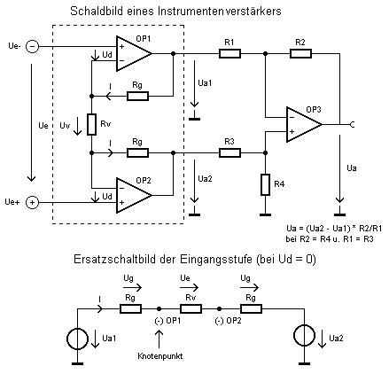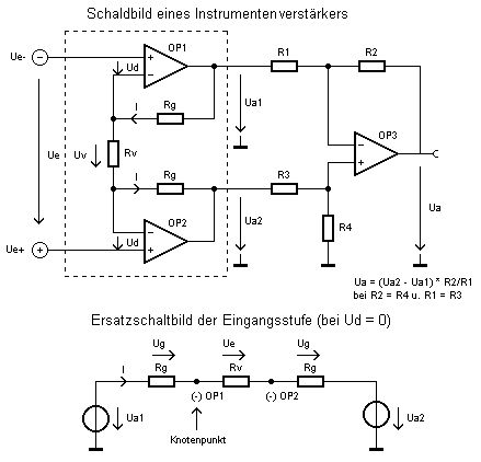 Mit Hilfe des invertierenden Verstärkers und der Referenzelektrode versucht man das mittlere Potential der beiden anderen Elektroden auf Masse zu halten (P-Regler).