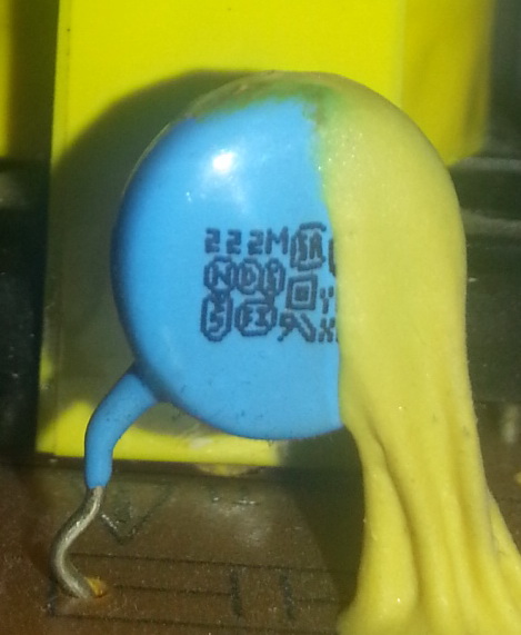 Das ist ein keramischer 2,2nF Kondensator der für "Y" Anwendungen spezifiziert ist, also zwischen Netz und berührbaren Metallteilen.