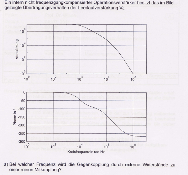 Hallo, kann mir bitte jemand bei der Aufgabe oben helfen? kann eine Lösung nirgendwo finden (( man mus anhand des Graphen bestimmen bei welcher Frequenz die Gegenkopplung eines OPV durch externe Widerstände zur Mitkopplung wird(( hab leider keine Idee(