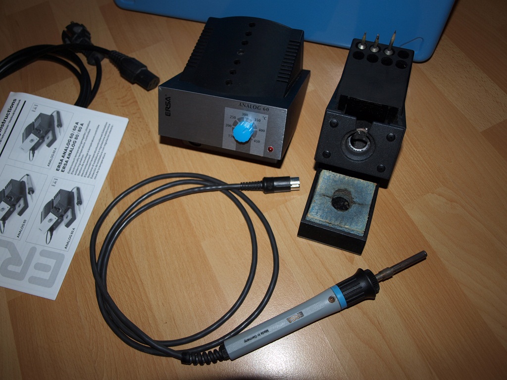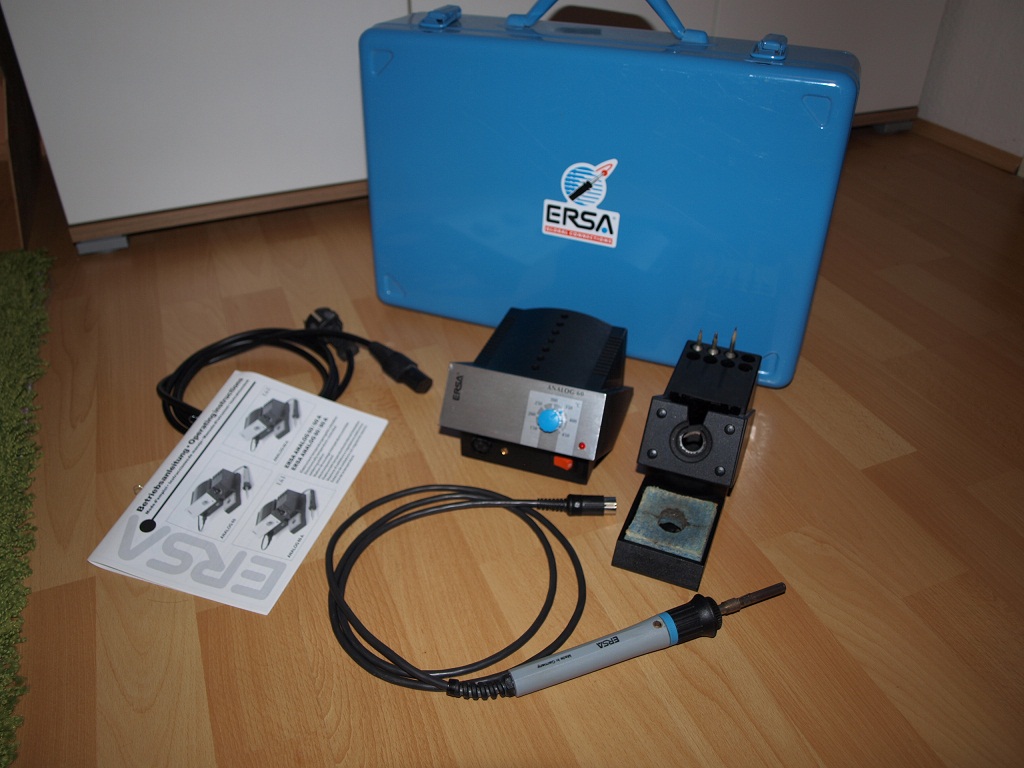 Hallo zusammen, zum Verkauf steht eine Ersa Analog 60 mit 3 Spitzen im Koffer. Die Spitzen sind 1x Bleistift 1,0mm 1x Bleistift 0,4mm 1x Meißel 2,2x1,0mm und haben alle gute Zinnannahme. Die Station wurde privat als Hobbyist und nicht industriell eingesetzt und funktioniert einwandfrei. Optischer Zustand siehe Bilder. Preis: 70Euro incl. Versand als DHL Paket.