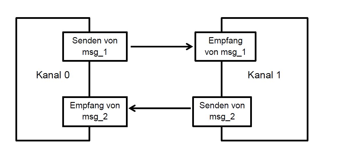 Hallo cskulkw, vielen Dank für die Hinweise. Die Habe ich eingesetzt und könnte schon etwas zum Laufen bringen(siehe Abbildung 1 und 2). Jetzt habe ich dann weiter versucht die Kommunikation wie es auf die Abbildung(Abbildung.GIF) zu sehen programmiert. Aber beim Debuggen, habe ich festgestellt, das die beiden Kanäle Daten senden, aber nichts wird empfangen. Ich wäre über Vorschläge sehr dankbar.