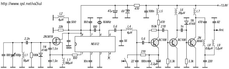 Hallo Bernd, Danke für die Antworten! Komme im Moment nicht ganz mit. Habe mittlerweile die Stromversorgung für den Sender fertig (inc. selbstgebautem Ladegerät). Jetzt ist erst mal die RIT dran. Zu deiner Schaltung... Die beiden Schwingkreise bilden ein kritisch gekoppeltes Eingangsfilter, nehme ich an?!? Warum sind J1, J2 und J3 parallelgeschaltet? HC4053 ist ein Analog Multiplexer/Demultiplexer nehme ich an (lt. Alldatasheets.com). Dann kommt der Diplexer. Warum dann ein T (Q1) in Basisschaltung (nimmt man die nicht eher für HF???)? Warum ist R7 eine starke Rauschquelle und wo ist die Gegenkopplung? Die 37dB bringt J4? Vermute, Q1 ist irgendwie für die Gegenkopplung zuständig... PS: habe hier noch was mit BD139 in der ES entdeckt, allerdings für niedrigere f (80m) http://www.youtube.com/watch?v=xV6M0k8zWj8 CW 3,5Mhz homebrew QRP 2watts transceiver with ceramic resonator vfo and DC receiver (mit BD139 PA)