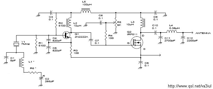 PS: habe in dem Buch "Zusatzschaltungen für Funkgeräte" eine kleine MOSFET-Endstufe gefunden, mit der man angeblich auf allen KW-Bändern eine Ausgangsleistung von 5W erreicht. Ist so eine Art "Nachbrenner" (PA) für 1W-Endsufen. Als aktiver Baustein wird verwendet: VN66AF (bzw. VN66AF/D) Als Ersatztyp soll auch der IRF510 gehen...