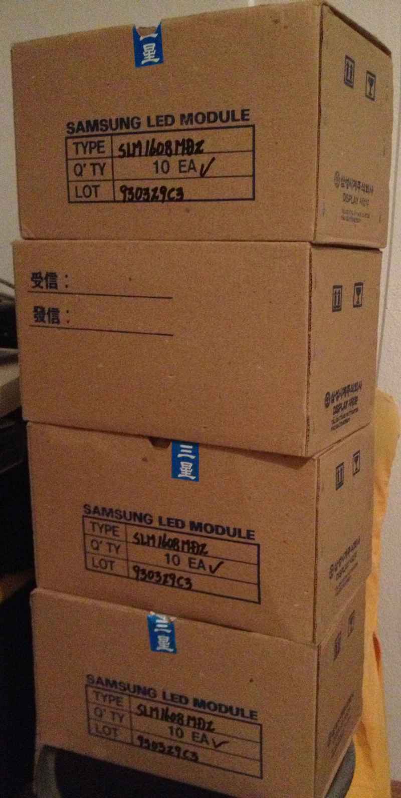 Thorsten S. schrieb: > Wo hast die denn gekauft? Ich habe sie über einen Bekannten bezogen der in irgend einer Form direkten Zugriff von Samsung aus hatte. Thorsten S. schrieb: > Sind die Module wirklich neu? Oder nur von dir nicht benutzt? Die Module sind nagelneu. Jedes Modul ist noch in der Orginalfolie verpackt und hat eine Schutzfolie über der Leuchtfläche. Insgesamt hatte ich 40 Stück, 2 davon hatte ich zum Testen, die stehen aber nicht zum Verkauf. Ergo 38 Stück über. Thorsten S. schrieb: >> - mittels Tastverhältnis ist die Helligkeit eines jeden einzelnen >> Punktes ansteuerbar > > Dazu muss man sagen, dass das nur geht wenn man sie ständig neu > beschreibt. Es ist nicht vorgesehen damit die Helligkeit zu ändern. Da spricht ja auch nichts dagegen. Das ist halt Multiplexen ineinander verschachtelt. Wie man den obrigen Links entnehmen kann funktioniert das allerdings perfekt.