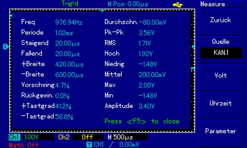 >Wie beim Sinus, positive, negative Halbwelle. Passt. Sieht gut aus. Nun>bräuchte man einen DA-Wandler.