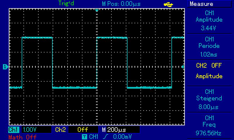 Mit 1536 erhalte ich, wie erwartet, 651Hz (1000000Hz / 1536 = 651Hz).
