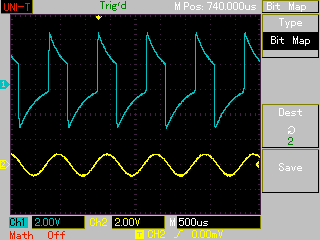>Aber welchen sinn hätte das hinzufügen der Rechteckspannung.. viel >bessere wäre doch zu wissen warum diese entsteht.. ;) Weiss ich nicht. Du warst es doch der geschrieben hat: >hin,.. das liegt wohl daran dass ich am Collector vom Treiber Q3 bereits >eine Rechteckspannung habe Das habe ich so verstanden, als ob DU dort zusätzlich eine Rechteckspannung einspeist. Das Du das so gemeint hast, das Du dort eine Rechteckspannung gemessen hast, kann ich ja nicht ahnen. "Haben" ist eigentlich kein sinnvoller Terminus Technicus. Dennoch, lohnt es sich dann mal in der Simulation zu schauen, ob Du diese Rechteckspannung auch dort feststellen kannst. Der C1 wird halt immer wieder über den R8 aufgeladen, denke ich.