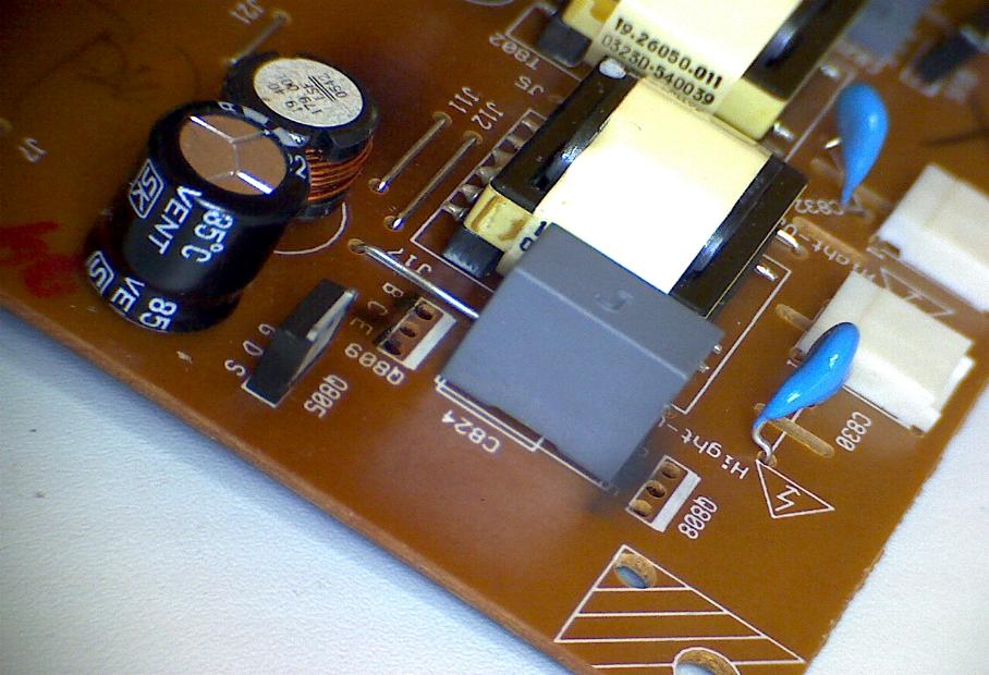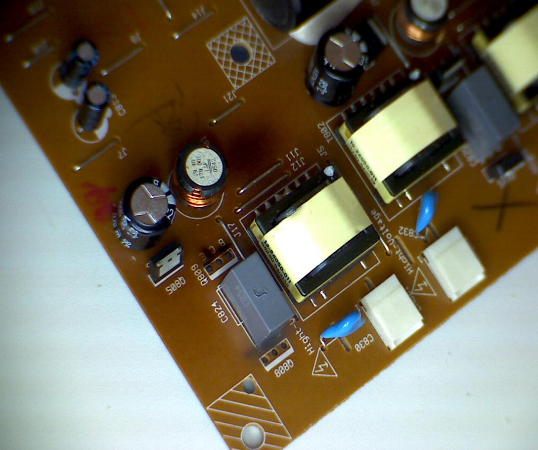 Dann kannst Du die blauen (C830, C832) auch gleich mittauschen, sie sind ebenfalls frequenz- und strombestimmend. Sind die Lampen (CCFL) schon verbraucht? Kann auch die Ursache sein, wenn keine adäquate Schutzschaltung vorgesehen ist. Die Transistoren sind 2SC5707. Stimmt die DC (Versorgung) / Ripple evtl. auch die Cs im Netzteil prüfen. Und beschreibe bitte die Ursache, wenn Du den Fehler gefunden hast. Danke