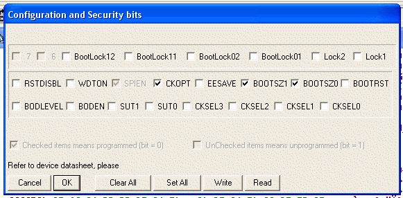 Hi, also bei mir ist der ATMEGA-16PI so eingestellt bei 16MHz und er läuft. Siehe Bild.