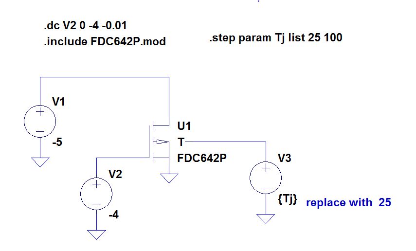 In den Files der LTspice Yahoo group findest du Beiepiele(Symbole) für NMOS und PMOS mit dem Temepraturpin. http://tech.groups.yahoo.com/group/LTspice/files/%20Lib/FDV301N/ http://tech.groups.yahoo.com/group/LTspice/files/%20Lib/FDT434P/ http://tech.groups.yahoo.com/group/LTspice/files/%20Lib/ Einstiegsseite: http://tech.groups.yahoo.com/group/LTspice/ Zum anmelden am besten einfach eine Yahoo email Adresse anlegen. Gruß Helmut