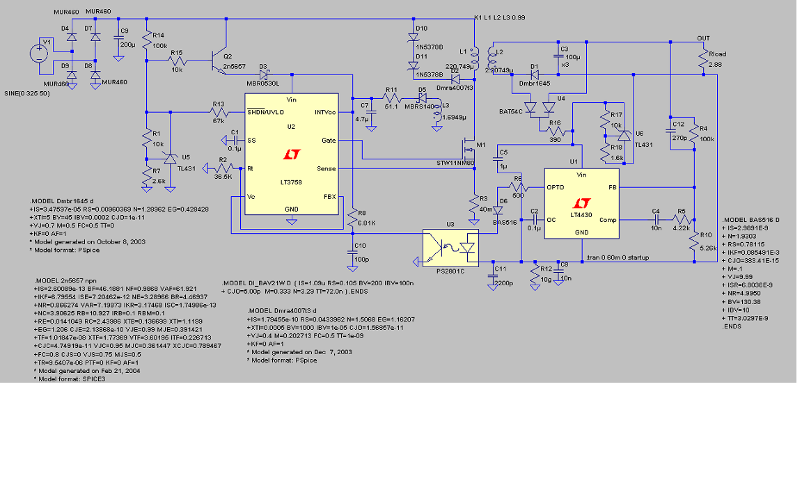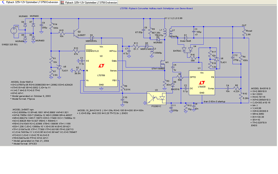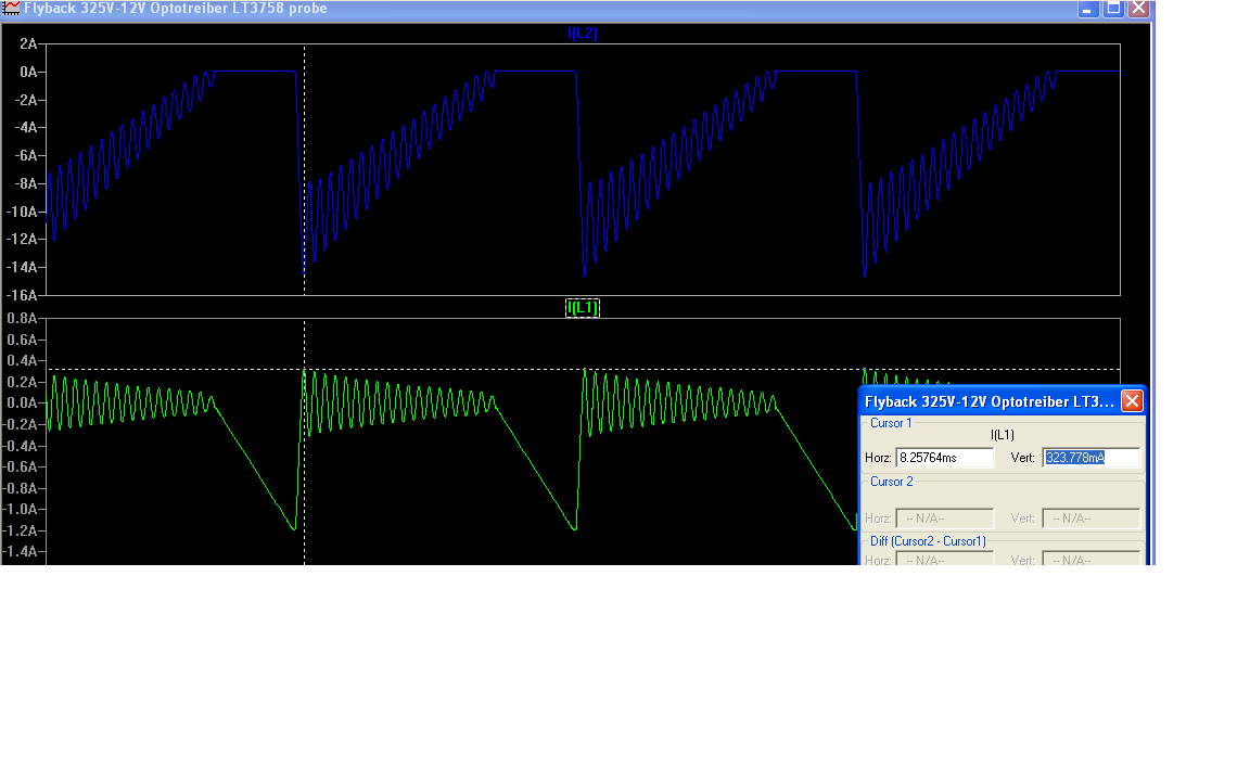 Ich weiß das Thema hatte man hier schon öfters. Jetzt hab ich aber über eine Stunde mir im Forum Beiträge dazu durchgelesen und bei Google gesucht, bin aber leider immer noch nicht viel schlauer wie vorher. Mein Sperrwandler an sich läuft bereits (in der Simulation). Wenn ich mit einer idealen Kopplung (k=1) und ohne Snubber simuliere schauen meine Stromverläufe auch schon ganz brauchbar aus (siehe angehängtes Bild). Wenn ich aber davon ausgehe, dass die Streuinduktivität 1% der Hauptinduktivität ist und dazu einen Snubber dimensioniere, bleibt Vds,max zwwar auf einem verhältnismäßig kleinen Niveau, aber dem normalen linearen Verlauf der Stromverläufe in den Spulen ist dann ein starkes Schwingen, was wohl von einer Resonanzerscheinung kommt, überlagert. Den Snubber habe ich nach dem Datenblatt des LT3758 Seite 19 ausgelegt: http://cds.linear.com/docs/Datasheet/3758Afd.pdf Dabei habe ich Werte für den Widerstand und den Kondensator des Snubbers errechnet. Da mir der errechnete Wert von 567.35k sehr groß vorkam, habe ich im Forum nach ähnlichen Problemen gesucht und bin dabei auf diesen Thread gestoßen: Beitrag "Snubber beim Flyback" Hier empfehlen verschiedene Leute ein R=20k und C=10nF. Auch mit diesen Werten habe ich meine Schaltung simuliert, aber das Ergebnis ist leider das selbe wie mit den errechneten Werten. Im Anhang habe ich ein paar Simulationsbilder, meine Simulation sowie die dafür notwendigen Modelle bzw Symbole angehängt. Vielleicht kann mir ja jemand hier aus dem Forum eine Formel bzw Internetseite sagen, mit welcher ich den Snubber richtig dimensionieren kann. Gruß