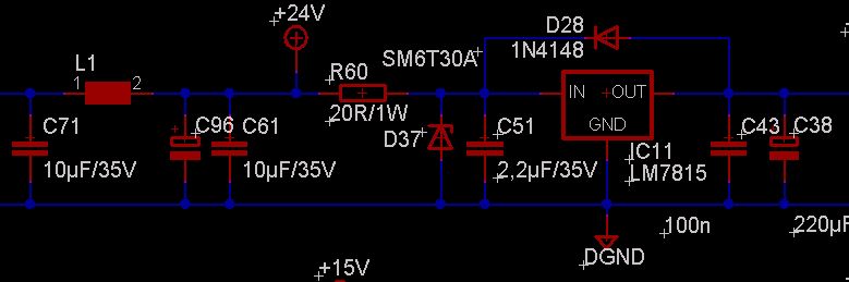>ich habe eine Schaltung die über 24V versorgt wird und mit einem >Linearregler L7815 auf 15V runtergeregelt wird. Dann muß deine Schaltung auf jeden Fall nach CE Surges aushalten! Tut sie das?