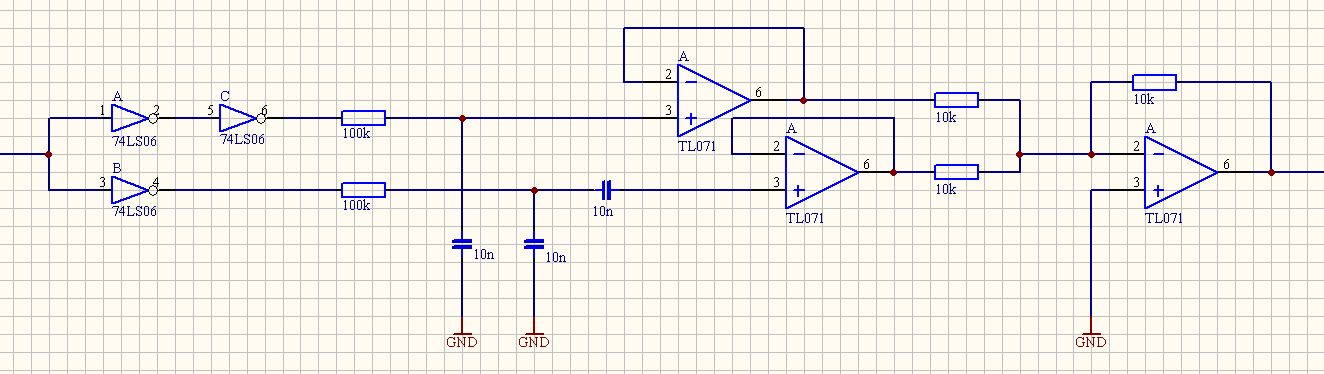 Hallo ich hatte eben mal etwas ausprobiert, was haltet ihr hiervon?? Im Ausgang hatt ich kaum störunngen bis die Spitzen von dem Invertierer, evtl kann man da noch einen Komperator hinterschalten, um die Störungsspitzen zu minimieren. Aufbau im Anhang Links eingang PWM rechts Gleichspannung gut geglättet ohne Brumm.. Gruss Jens