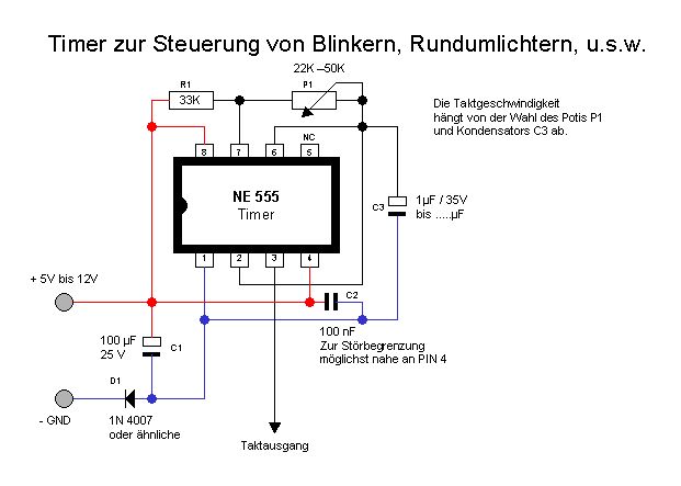Hallo alle Zusammen! Ich würde gerne ein paar Lichter in ein Modellfahrzeug einbauen und die Blinkschaltung für die Warnblinkanlage hab ich auch schon. Das Problem ist nun, dass der Schaltplan für eine Stromversorgung von 12V ausgelegt ist, ich allerdings nur 6V zu Verfügung hab. Ich hab schon etwas in Google gesucht, allerdings nichts gefunden. Könnte mir da jetzt jemand helfen? Geht das, dass ich einfach etwas an den Werten der Transistoren und Widerstände "herumschraub"? Über eine Antwort würde ich mich sehr freuen. Gruß, Erik