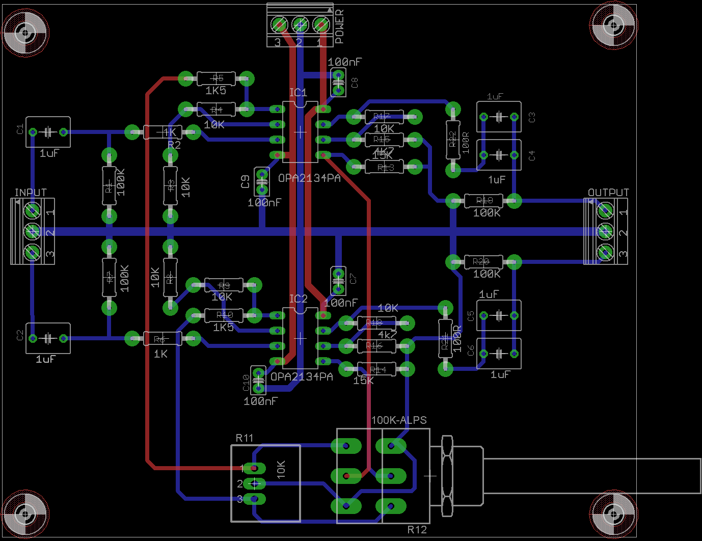 > Falls jemand auch gebrauchen kann, ein super PreAmp. > Original Plan stammt von ESP Ja, aber das hier stammt von dir. Keinerlei Abblockkondensatoren für die OPVs, unsinnig lange Leiterzüge (z.B. R13/14/17/18 umdrehen,...), unnötig zweiseitige Platine...