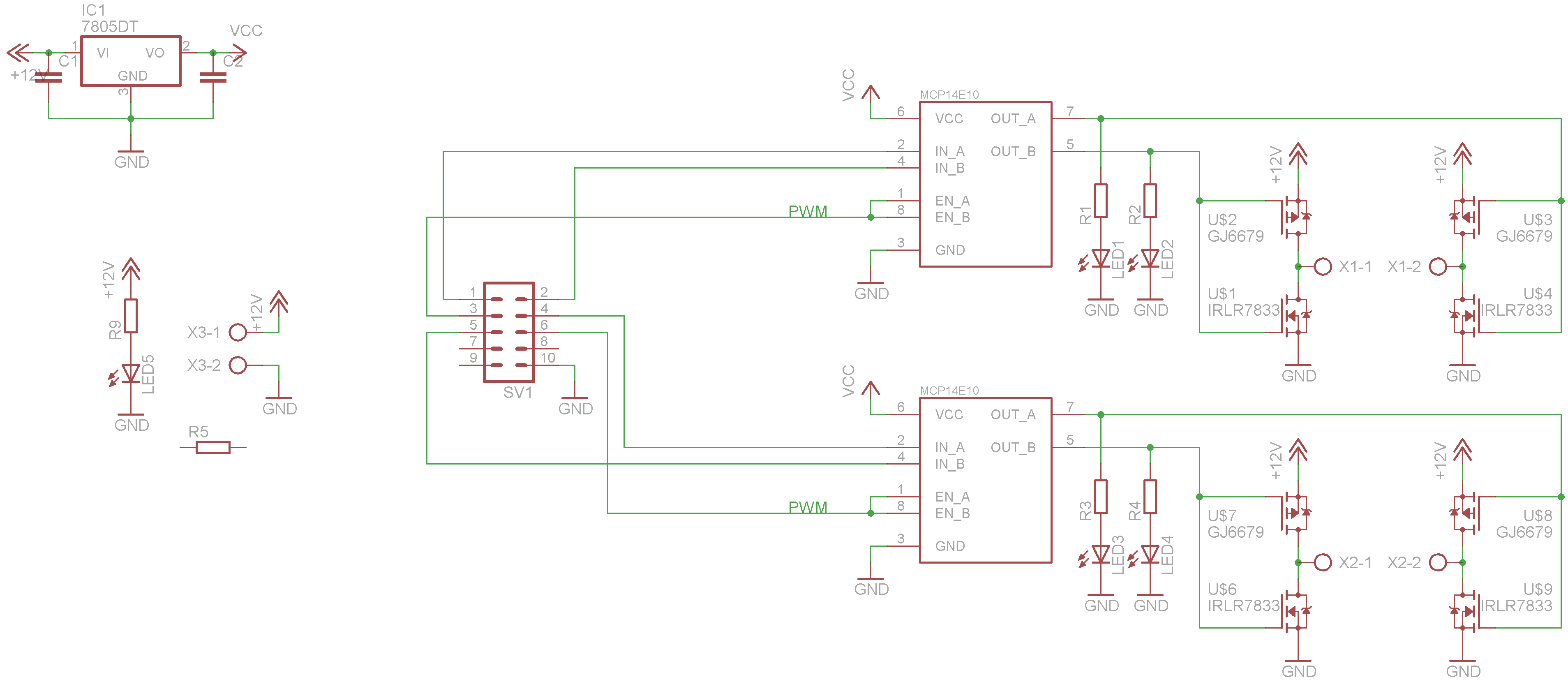 Hallo, ich habe ein Problem mit meiner Schaltung (siehe Anhang) und zwar werden die P-Mosfets warm, auch wenn nichts am Ausgang angeschlossen wird. Ist INA und INB Low, so funktioniert alles. Sobald INA+INB High sind machen die Mosfets einen Kurzschluss bzw die P-Mosfets werden warm. Pwm Frequenz beträgt 64Hz, die Mosfets wurden aus einem Brushless Regler ausgebaut.