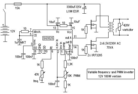 Hallo für mein Abschlussprojekt bau ich ein Wechselrichter mit rechtecksignal wo die totzeit einstellbar ist...einen ähnlichen schaltplan hab ich mal im inet gefunden. allerdings fällt mir das verständnis für die beschaltung schwer.kann das vll mal iwer grob erklären? und ob die schaltung so funktionieren würde? mfg Umph88