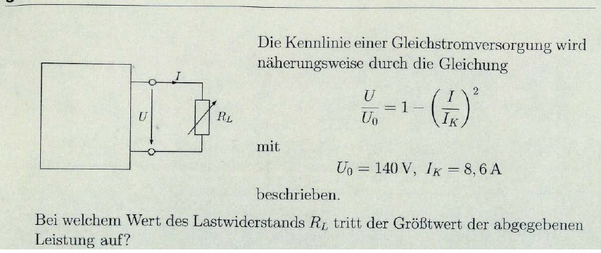 Michael L. schrieb:> @Sibei> 1. Formel für die Leistung aufstellen> 2. Differenzieren, nullsetzen und nach Stromstärke umformen> 3. In die Gleichung für den Widerstand einsetzen