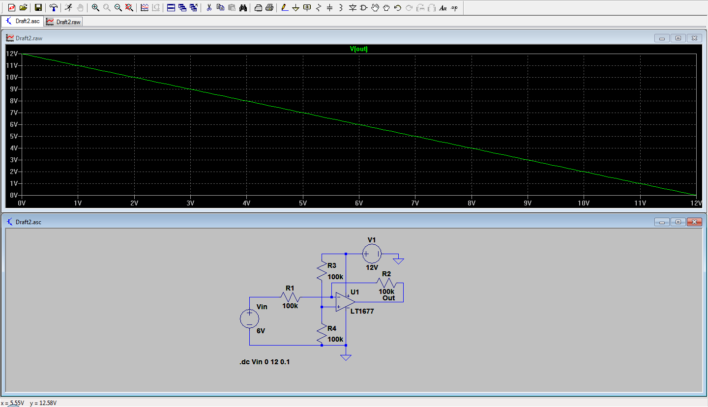 egal schrieb: > Invertierender Verstärker+Offset. -12V über ICL7660. Wozu? Ein invertierender Verstärker mit einem Rail-to-Rail OpAmp und 6V am nichtinvertierenden Eingang sollte reichen. Exakt 0V und 12V wird man nicht erreichen können (insbesondere bei Belastung), aber vielleicht reicht's ja.