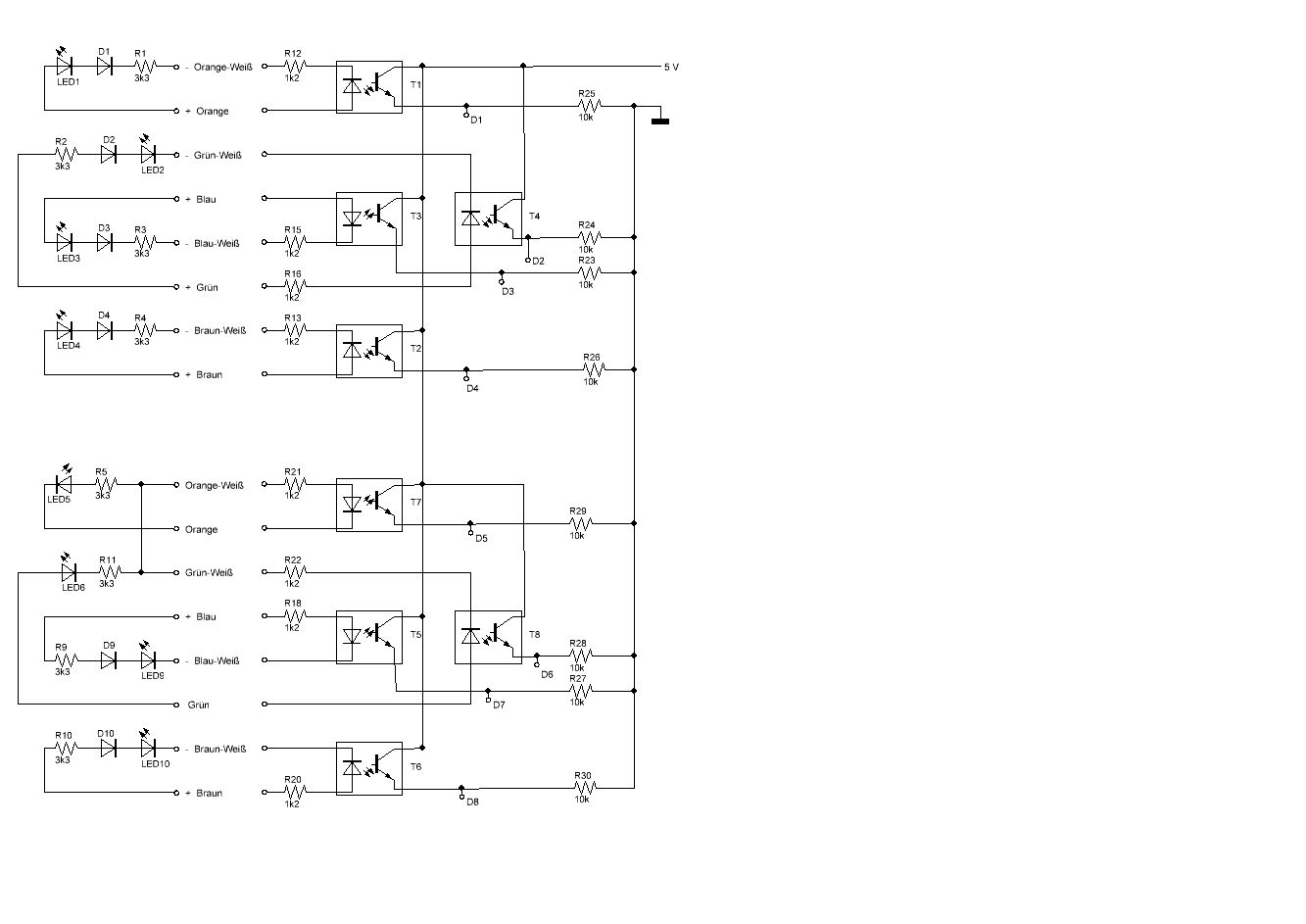 Es sind auf jeden Fall 1N4 Dioden und richtig eingezeichnet habe ich sie auch. Das Teil ist von 1987 und die Bahnen ziemlich schwer zu verfolgen auf den Platinen. Also nehme ich 3k3 anstelle von 1k2. Soll ich den 4N35 zur Sicherheit auch noch Dioden verpassen? Oder machen dem die -14 Volt nichts aus?