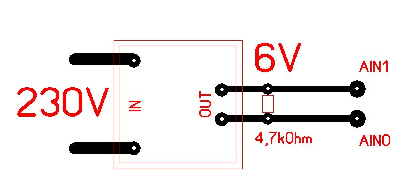 sehr seltsam ist ja dass der 6V trafo anscheinend 10V eff liefert. würde das ganze mit einem spannungsteiler mit zwei mal 1k lösen!