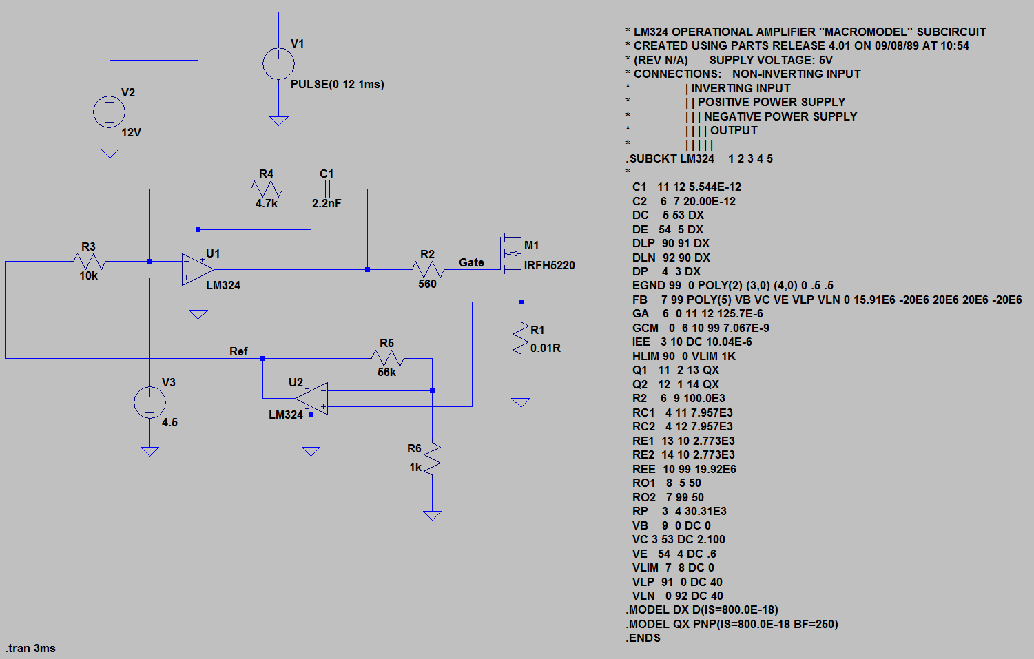 Yo, glaube ich lass es ganu so. Habe es mittlerweile mal auf ner Lochrasterplatte aufgebaut und den Sollwert mit nem Poti einstellbar gemacht... ich bin positiv überrascht über die Stabiliät!! Klar, die Regelung ist sehr langsam (zumindest aus elektronischer Sicht), aber es ist auch nicht zu erwarten dass biem Akku entladen schnell nachgeregelt werden muss. Für alle die es interessiert hab ich mal die Grafik angehängt, die die Simulation ausspuckt - zum realen Messen hab ich keine Zeit :-), denn es läuft ja. Gruß Chris