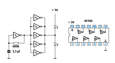 Moin, nun plane ich etwas um und möchte gerne zwei oder LEDs blinken lassen - so weit so gut, Anleitungen gibt es im Netz zu Hauf, ABER... ich möchte die ganze Schaltung gerne sehr flach bauen und deshalb am liebsten eine/zwei Knopfzelle(n) als Spannungsquelle nutzen. Hat jemand eine Schaltungsidee? Die meisten Schaltungen sind mit 2x1,5V Mignon dimensioniert und ich habe etwas Sorge, dass das mit einer Knopfzelle super schnell alle ist... Danke Jakob