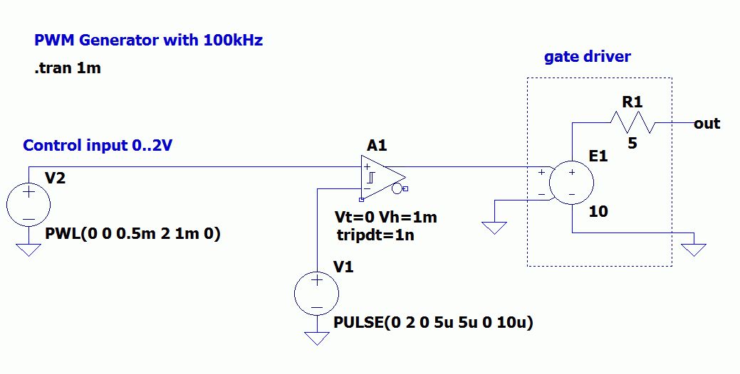 Ich experimentiere gerade mit LTSpice rum und brauche eine PWM (feste Frequenz), deren Tastverhältnis über eine Steuerspannung vorgegeben werden kann bzw von einer spannung (z.B. an einem Kondensator) abhängig ist. Gibt es eine Möglichkeit die Zeit von äußeren Variablen abhängig zu machen?