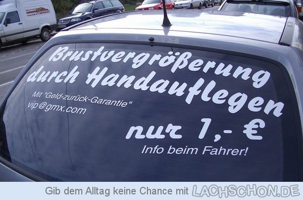 Wollen wir jetzt einen Wettbewerb starten, wer die dämlichsten Heckscheibenaufschriften (inklusive Falschaussage) vorweisen kann? Da kann ich mithalten! Ansonsten noch einmal daüber nachdenken, was eine Leihe ist!