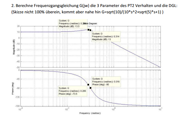 Du sollst neben G(jw) noch K, w0 und D bestimmen. Außerdem wird die DGL verlangt.
