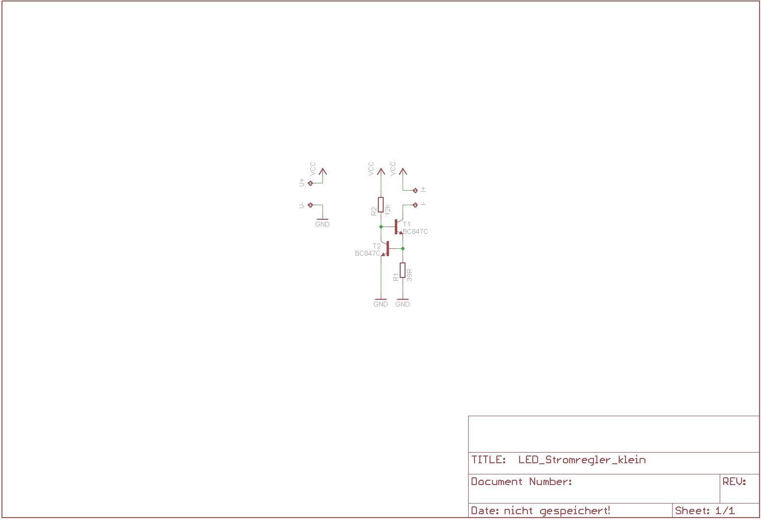 Hallo Elektronik-Profis! Ich habe mir eine Konstantstromquelle mit bipolaren Transistoren nach diesem Artikel aufgebaut: Konstantstromquelle: Konstantstromquelle mit bipolaren Transistoren Damit möchte ich eine LED mit ~20mA an einem 7,4V LiPo-Akku betreiben. Jedoch messe ich mit den verwendeten Widerständen und Transistoren nur einen Strom von 7mA. R2 sollte mit seinen 12k T1 in Sättigung betreiben und R1 den Strom auf ungefähr 18mA durch die LED begrenzen. Warum messe ich nun nur 7mA an der LED? Bitte um Hilfe!